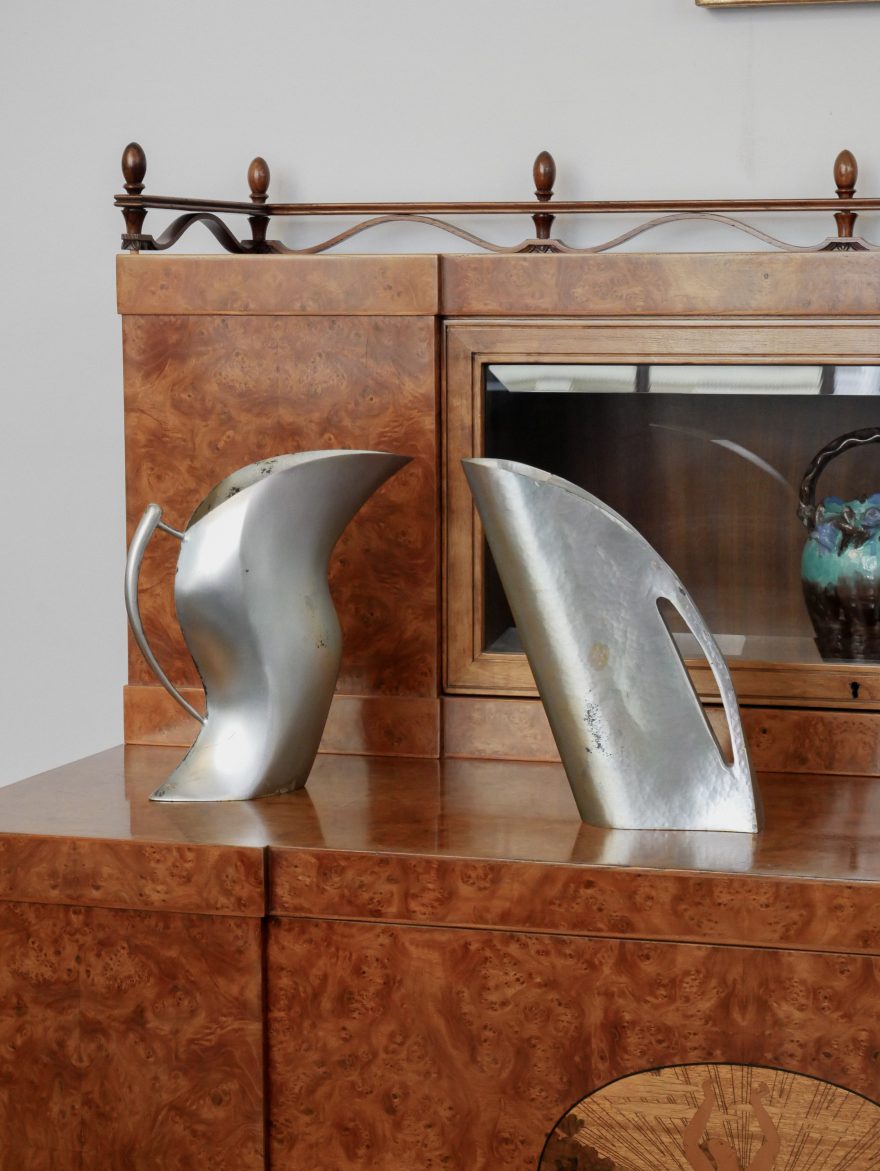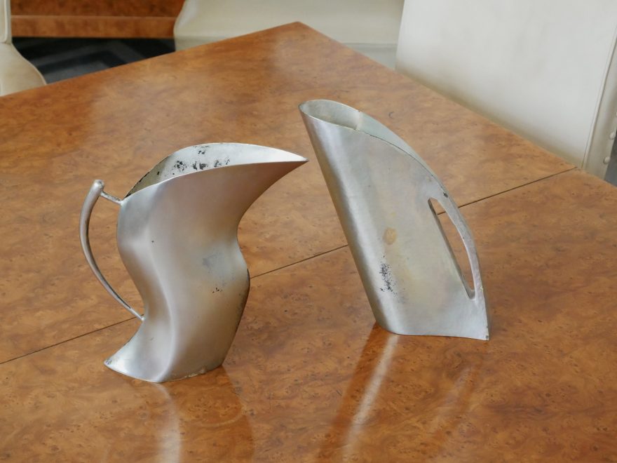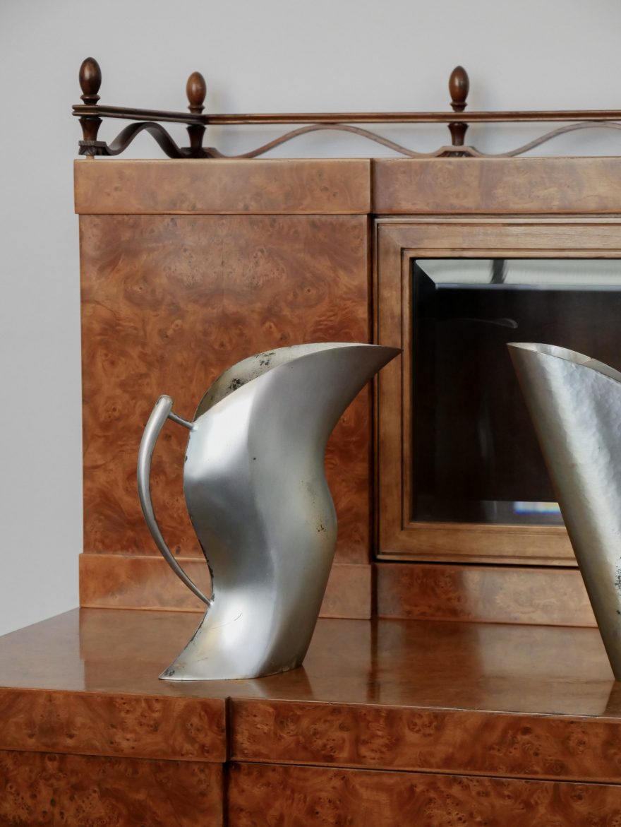Carafe Instabilia by Massimo Iosa Ghini for Design Gallery Milano in 1989. Produced by Argenteria Merano in 1989. Alpaca Silver.